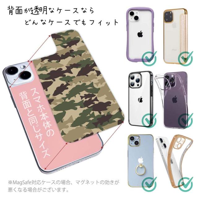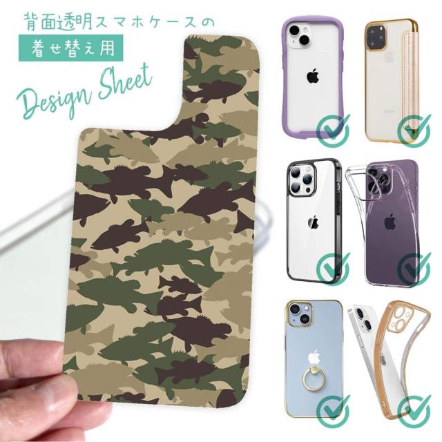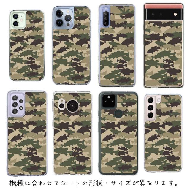 スマホケース iPhone Google Pixel Xperia Galaxy AQUOS arrows 着せ替え シート インナーシート スマホカバー 背面 透明 クリア オリジナル デザイン 釣り 魚 ルアー ブラックバス 迷彩大柄 ブラウンカラー