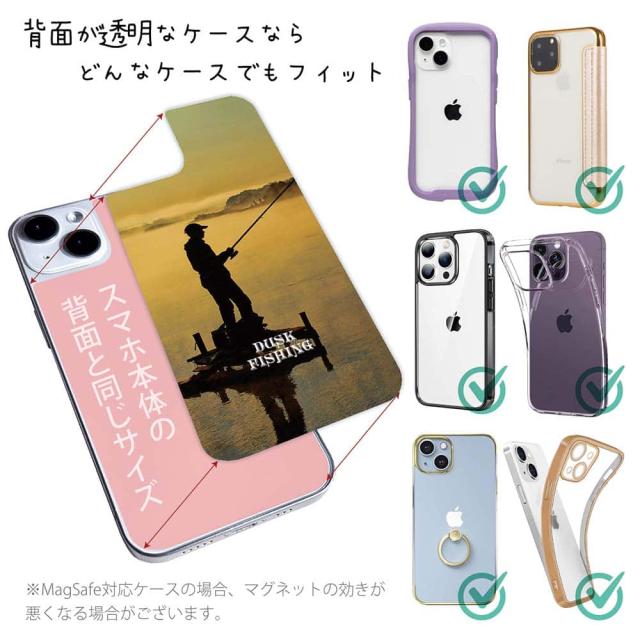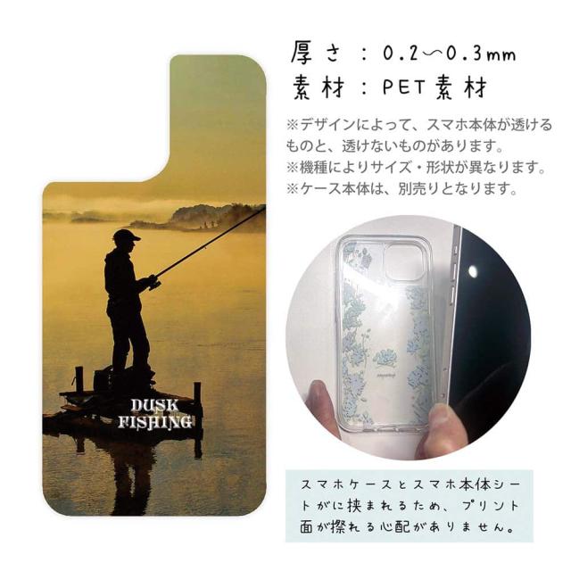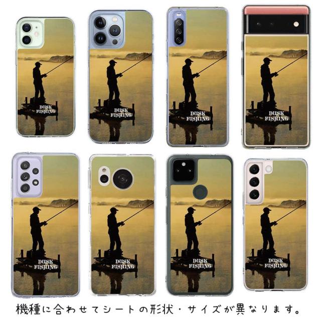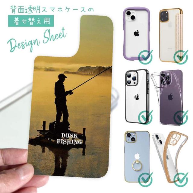 スマホケース iPhone Google Pixel Xperia Galaxy AQUOS arrows 着せ替え シート インナーシート スマホカバー 背面 透明 クリア オリジナル デザイン 釣り 魚 ルアー 夕暮れフィッシング