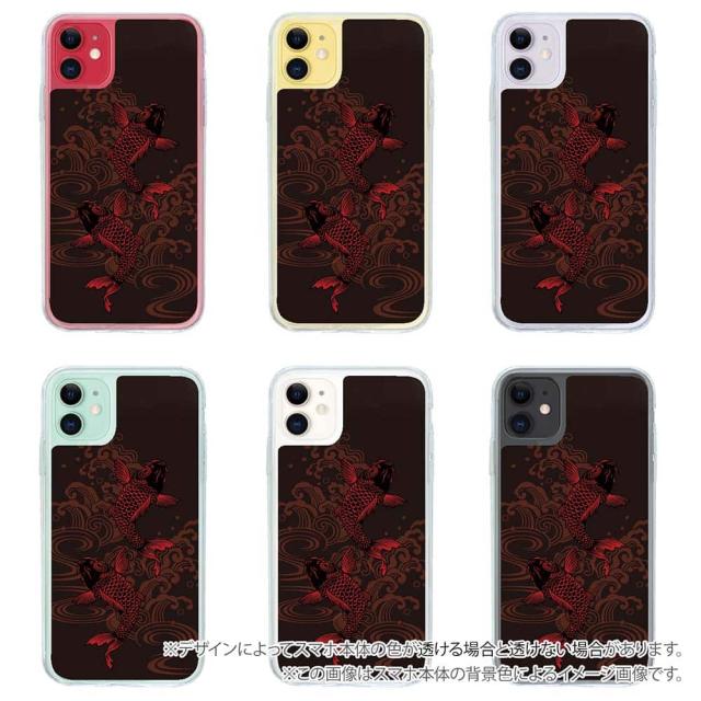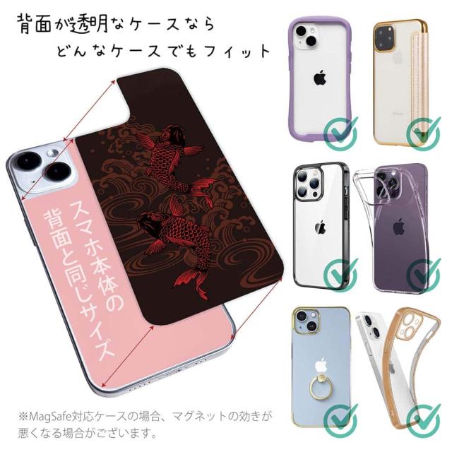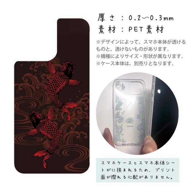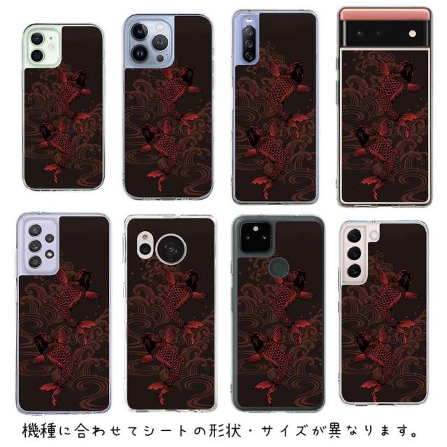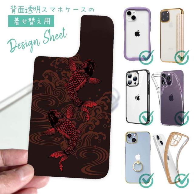 スマホケース iPhone Google Pixel Xperia Galaxy AQUOS arrows 着せ替え シート インナーシート スマホカバー 背面 透明 クリア オリジナル デザイン 釣り 魚 ルアー タトゥー風昇り鯉 レッド&ブラック