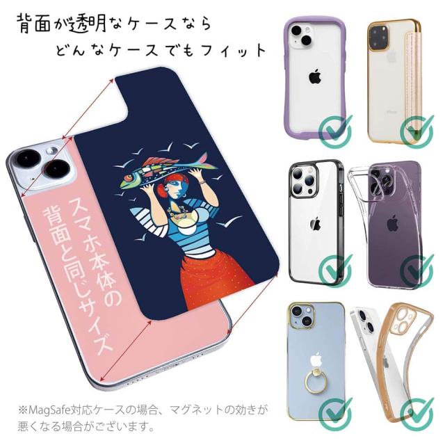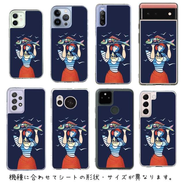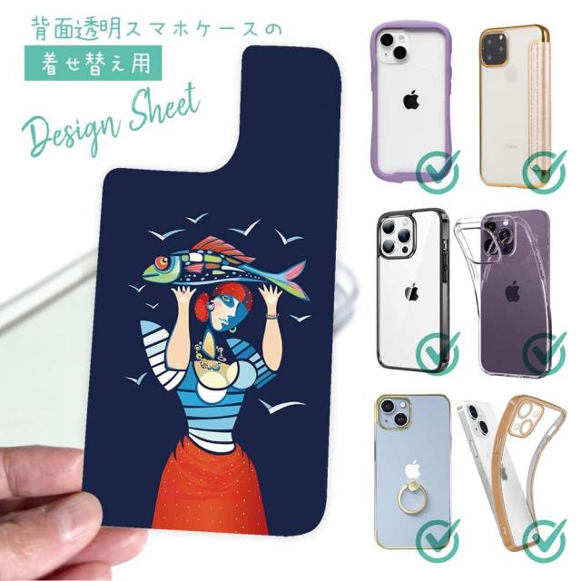 スマホケース iPhone Google Pixel Xperia Galaxy AQUOS arrows 着せ替え シート インナーシート スマホカバー 背面 透明 クリア オリジナル デザイン 釣り 魚 ルアー 魚を手にするイパネマの娘