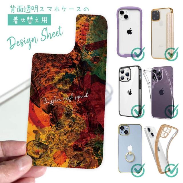 スマホケース iPhone Google Pixel Xperia Galaxy AQUOS arrows 着せ替え シート インナーシート スマホカバー 背面 透明 クリア オリジナル デザイン 釣り 魚 ルアー アオリイカ 鉄錆