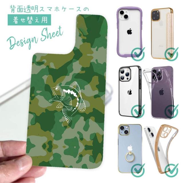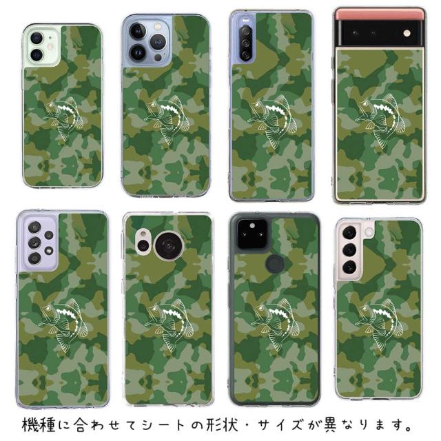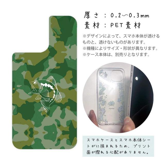 スマホケース iPhone Google Pixel Xperia Galaxy AQUOS arrows 着せ替え シート インナーシート スマホカバー 背面 透明 クリア オリジナル デザイン 釣り 魚 ルアー 迷彩&ブラックバスのイラスト パート1