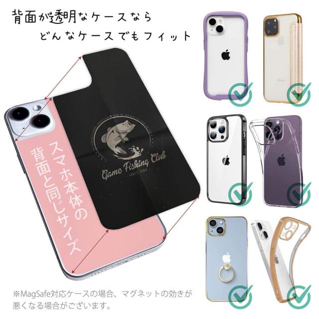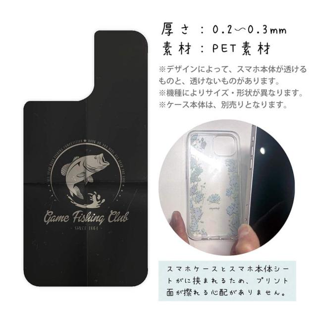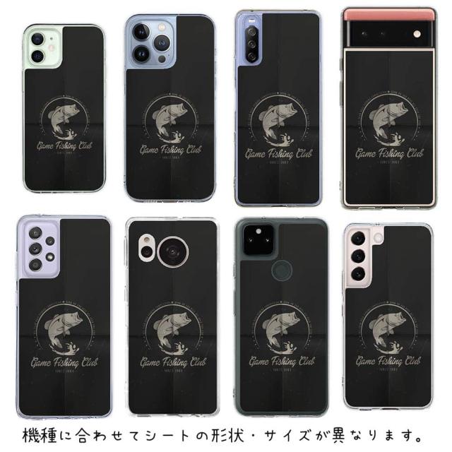 スマホケース iPhone Google Pixel Xperia Galaxy AQUOS arrows 着せ替え シート インナーシート スマホカバー 背面 透明 クリア オリジナル デザイン 釣り 魚 ルアー 古いバス・クラブのポスター
