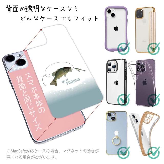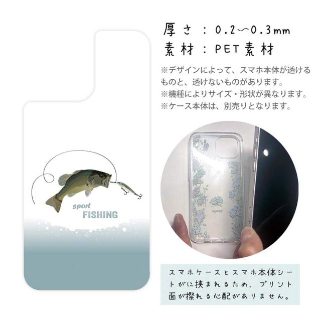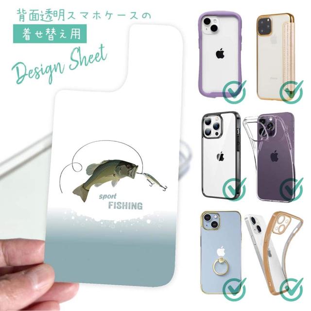 スマホケース iPhone Google Pixel Xperia Galaxy AQUOS arrows 着せ替え シート インナーシート スマホカバー 背面 透明 クリア オリジナル デザイン 釣り 魚 ルアー スポーツフィッシング