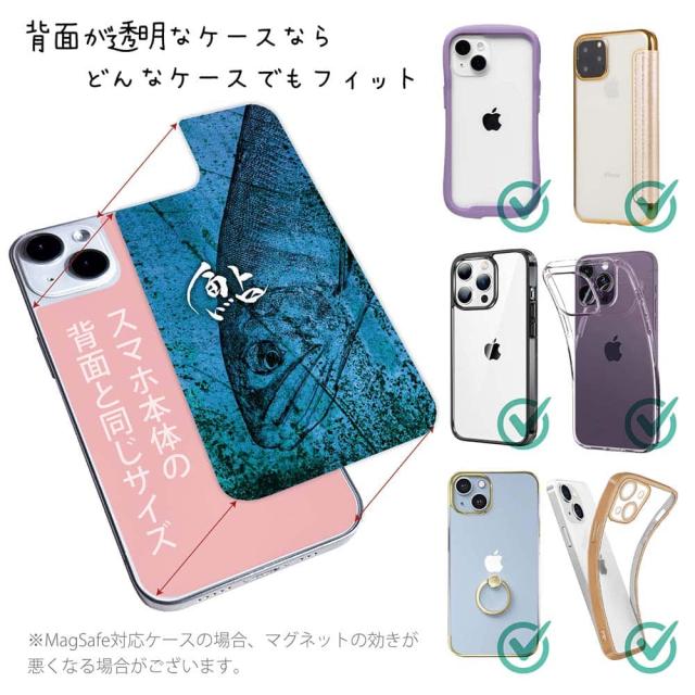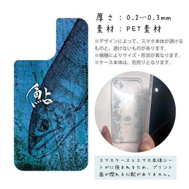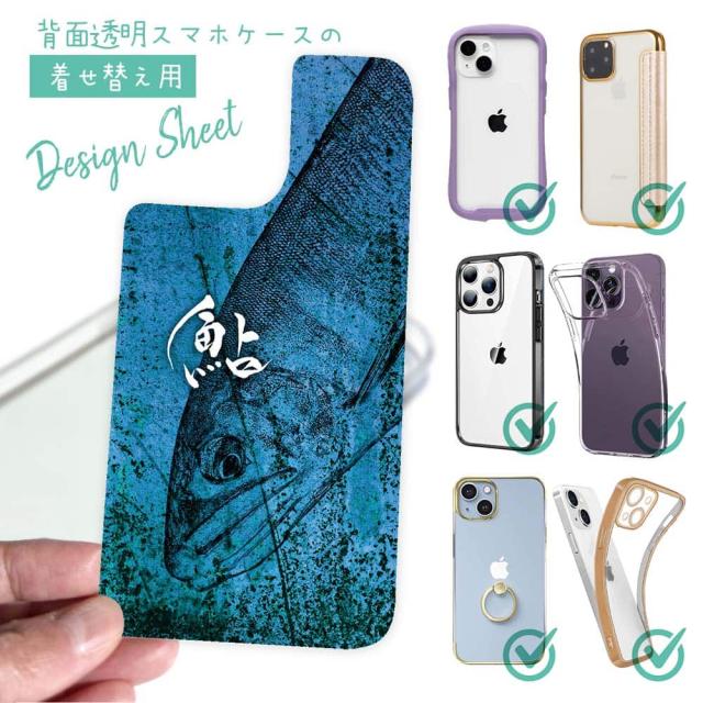 スマホケース iPhone Google Pixel Xperia Galaxy AQUOS arrows 着せ替え シート インナーシート スマホカバー 背面 透明 クリア オリジナル デザイン 釣り 魚 ルアー アユ 鉄錆 ブルー
