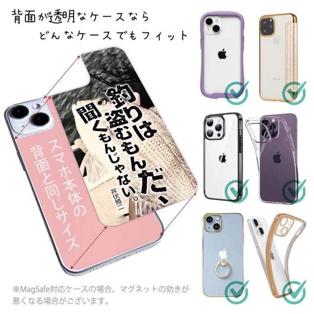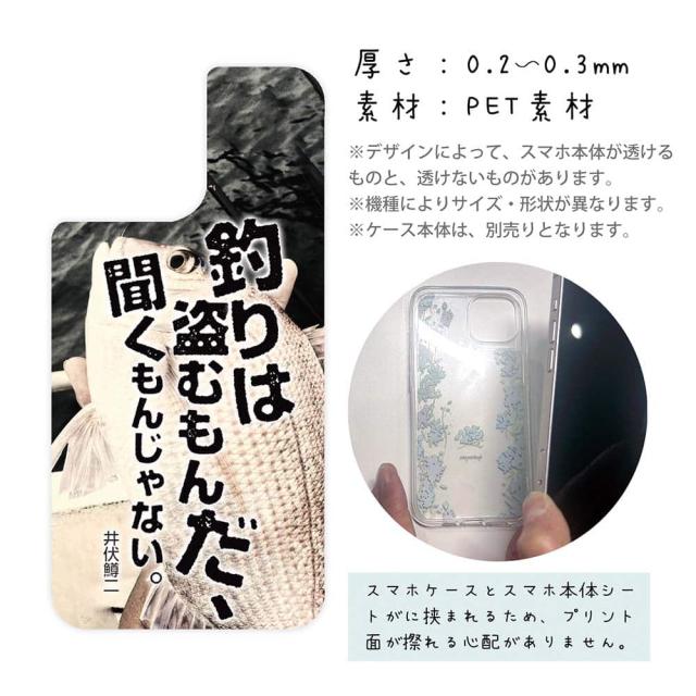 スマホケース iPhone Google Pixel Xperia Galaxy AQUOS arrows 着せ替え シート インナーシート スマホカバー 背面 透明 クリア オリジナル デザイン 釣り 魚 ルアー 釣りはぬすむもんだ、聞くもんじゃない。