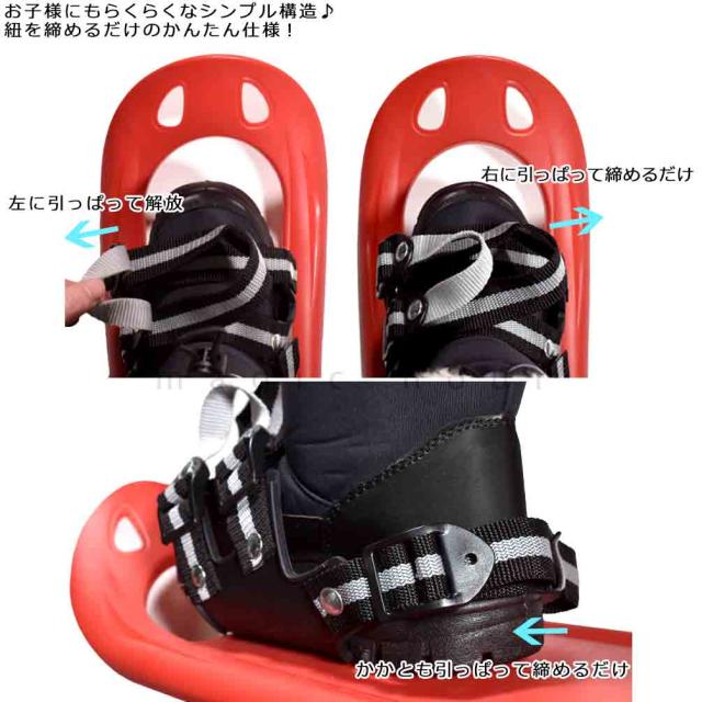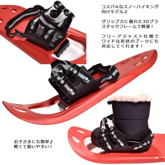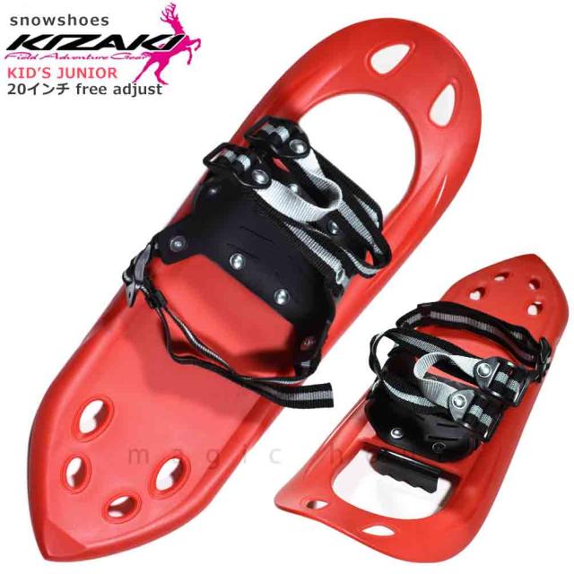 ◆ キッズ ジュニア KIZAKI キザキ スノーシュー かんじき 20インチ 簡単 ベルト紐式 軽量 3D プラスチック 雪山 ウォーキング 赤 ◆
