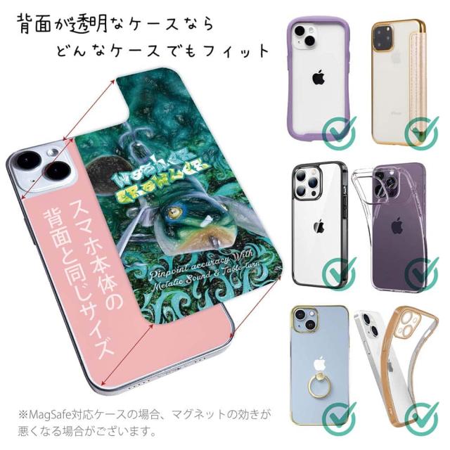 スマホケース iPhone Google Pixel Xperia Galaxy AQUOS arrows 着せ替え シート インナーシート スマホカバー 背面 透明 クリア オリジナル デザイン 釣り 魚 ルアー ノリーズ 初代ウォッシャークローラー