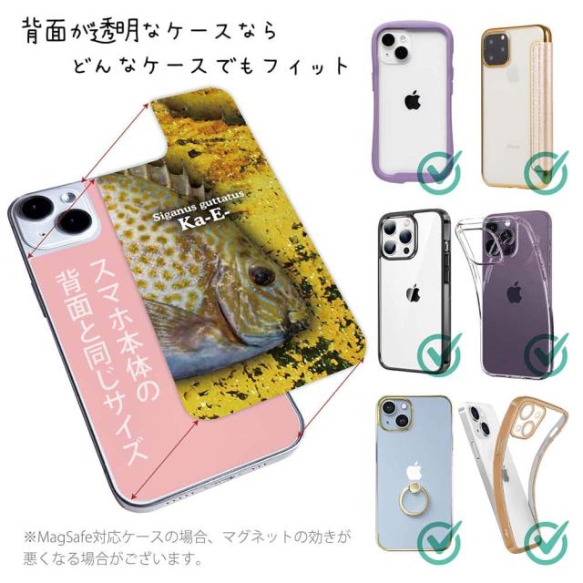 スマホケース iPhone Google Pixel Xperia Galaxy AQUOS arrows 着せ替え シート インナーシート スマホカバー 背面 透明 クリア オリジナル デザイン 釣り 魚 ルアー カーエー(ゴマアイゴ)