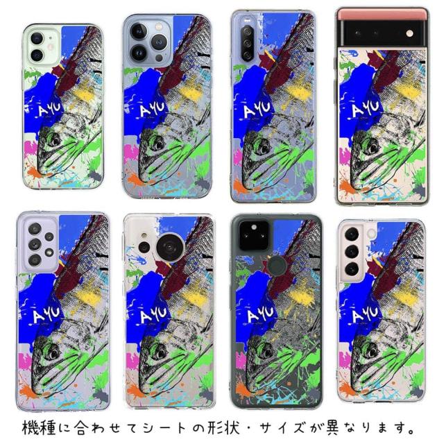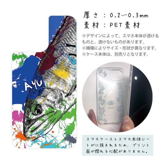 スマホケース iPhone Google Pixel Xperia Galaxy AQUOS arrows 着せ替え シート インナーシート スマホカバー 背面 透明 クリア オリジナル デザイン 釣り 魚 ルアー アユ ペンキペイント