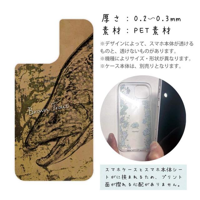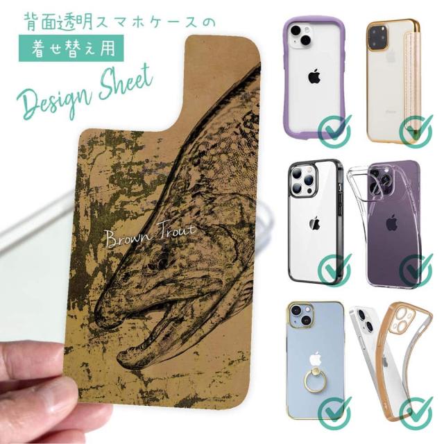 スマホケース iPhone Google Pixel Xperia Galaxy AQUOS arrows 着せ替え シート インナーシート スマホカバー 背面 透明 クリア オリジナル デザイン 釣り 魚 ルアー ブラウントラウト 鉄錆