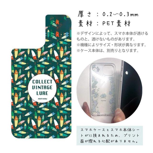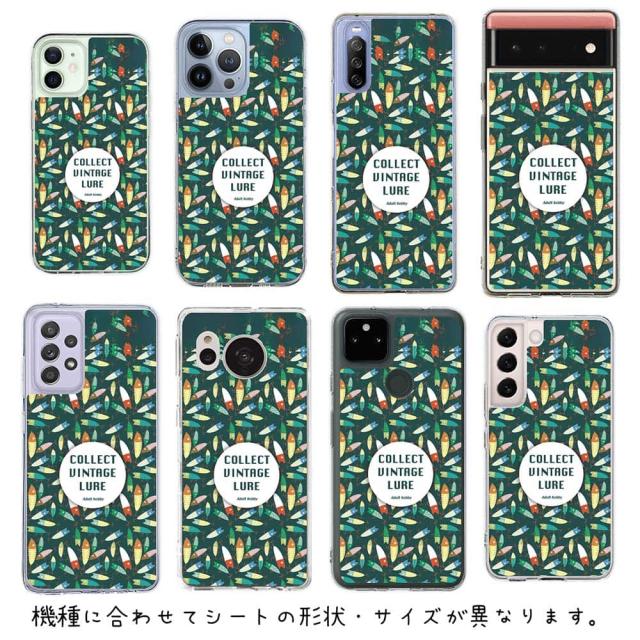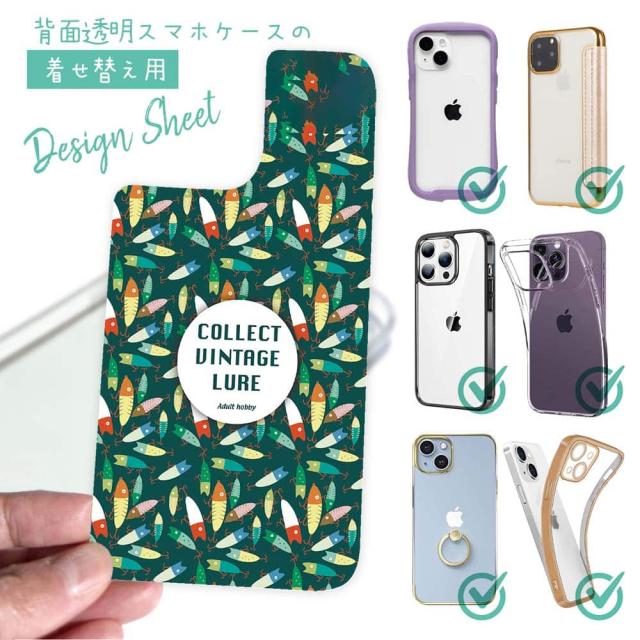 スマホケース iPhone Google Pixel Xperia Galaxy AQUOS arrows 着せ替え シート インナーシート スマホカバー 背面 透明 クリア オリジナル デザイン 釣り 魚 ルアー 大人の趣味 ブルー