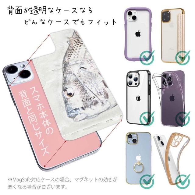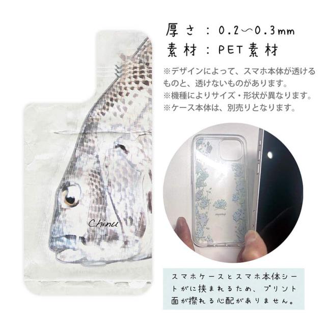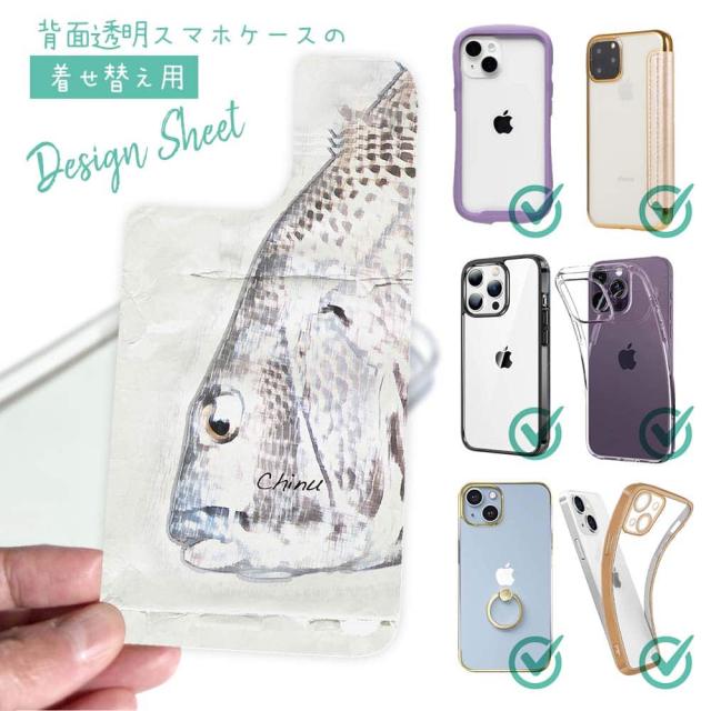 スマホケース iPhone Google Pixel Xperia Galaxy AQUOS arrows 着せ替え シート インナーシート スマホカバー 背面 透明 クリア オリジナル デザイン 釣り 魚 ルアー クロダイ(チヌ)手書き風