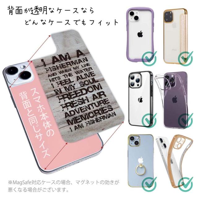 スマホケース iPhone Google Pixel Xperia Galaxy AQUOS arrows 着せ替え シート インナーシート スマホカバー 背面 透明 クリア オリジナル デザイン 釣り 魚 ルアー I am a fisherman.
