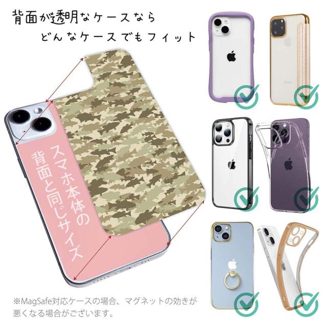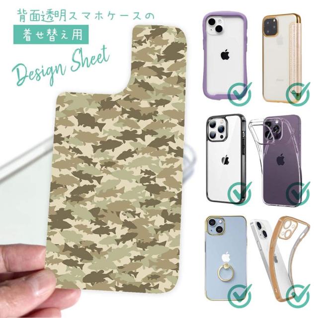 スマホケース iPhone Google Pixel Xperia Galaxy AQUOS arrows 着せ替え シート インナーシート スマホカバー 背面 透明 クリア オリジナル デザイン 釣り 魚 ルアー ブラックバス 迷彩柄 ベージュカラー
