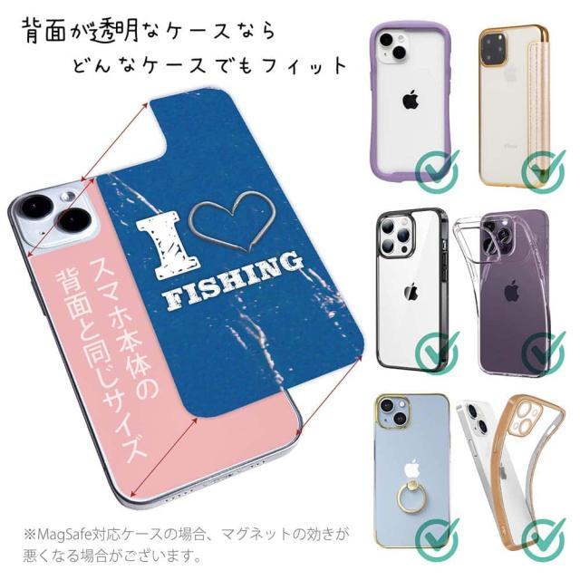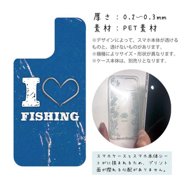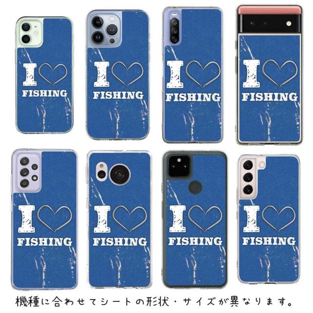 スマホケース iPhone Google Pixel Xperia Galaxy AQUOS arrows 着せ替え シート インナーシート スマホカバー 背面 透明 クリア オリジナル デザイン 釣り 魚 ルアー I love Fishing Blue