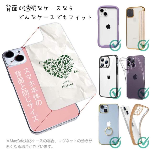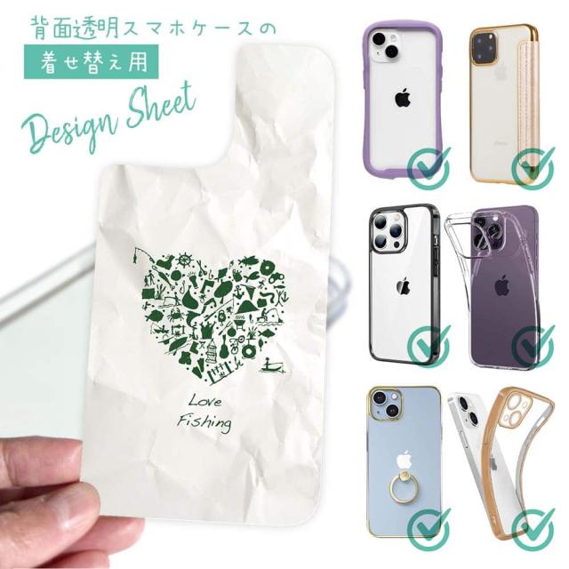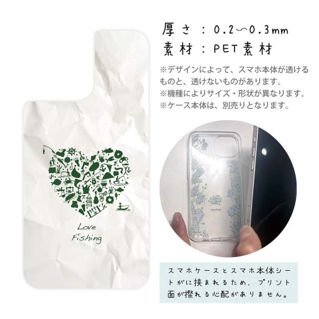 スマホケース iPhone Google Pixel Xperia Galaxy AQUOS arrows 着せ替え シート インナーシート スマホカバー 背面 透明 クリア オリジナル デザイン 釣り 魚 ルアー Love fishing