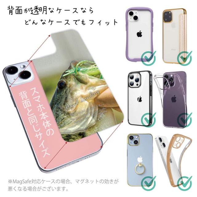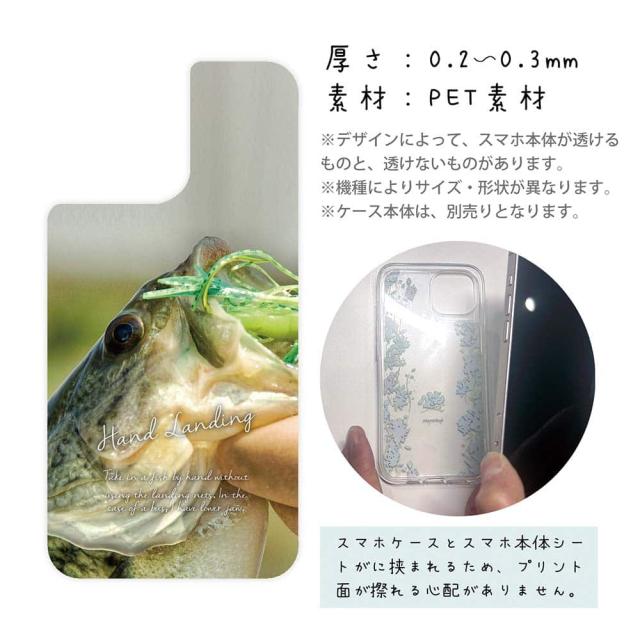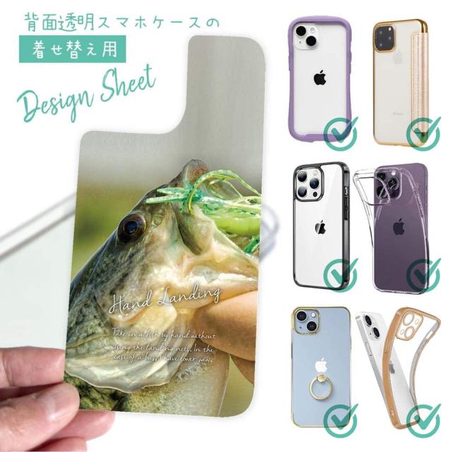 スマホケース iPhone Google Pixel Xperia Galaxy AQUOS arrows 着せ替え シート インナーシート スマホカバー 背面 透明 クリア オリジナル デザイン 釣り 魚 ルアー ハンドランディング