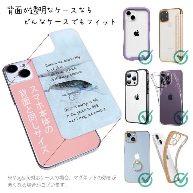 スマホケース iPhone Google Pixel Xperia Galaxy AQUOS arrows 着せ替え シート インナーシート スマホカバー 背面 透明 クリア オリジナル デザイン 釣り 魚 ルアー 機会はどの場所にもある