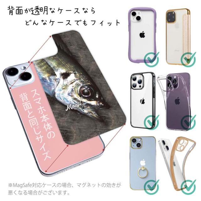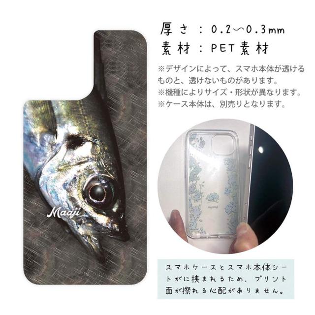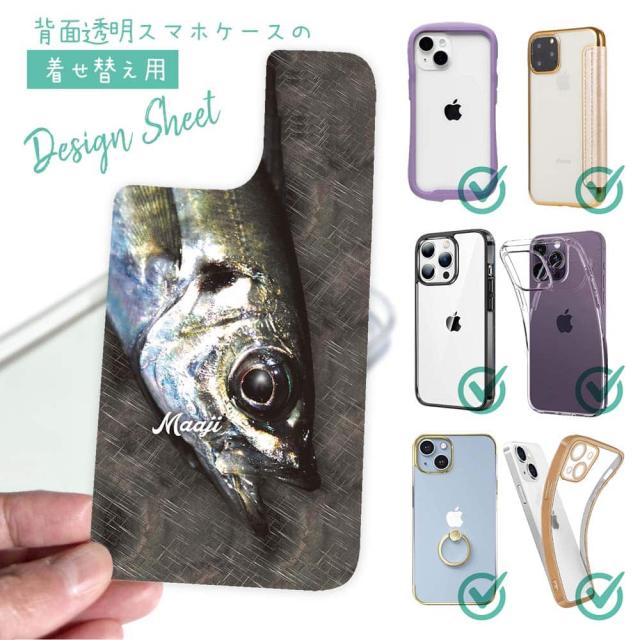 スマホケース iPhone Google Pixel Xperia Galaxy AQUOS arrows 着せ替え シート インナーシート スマホカバー 背面 透明 クリア オリジナル デザイン 釣り 魚 ルアー マアジ