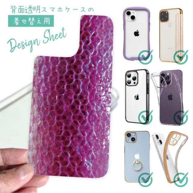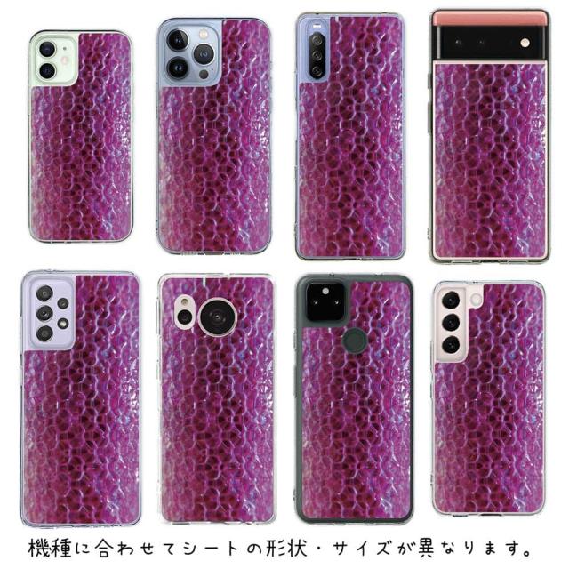 スマホケース iPhone Google Pixel Xperia Galaxy AQUOS arrows 着せ替え シート インナーシート スマホカバー 背面 透明 クリア オリジナル デザイン 釣り 魚 ルアー エギ柄 ピンクラメ