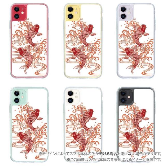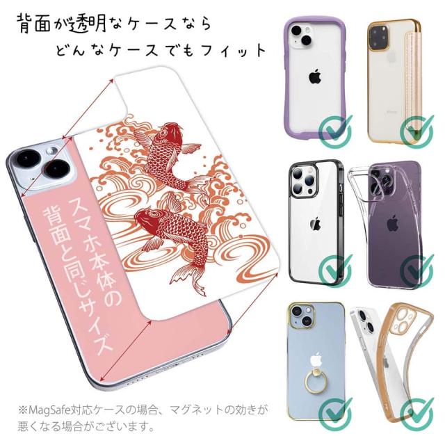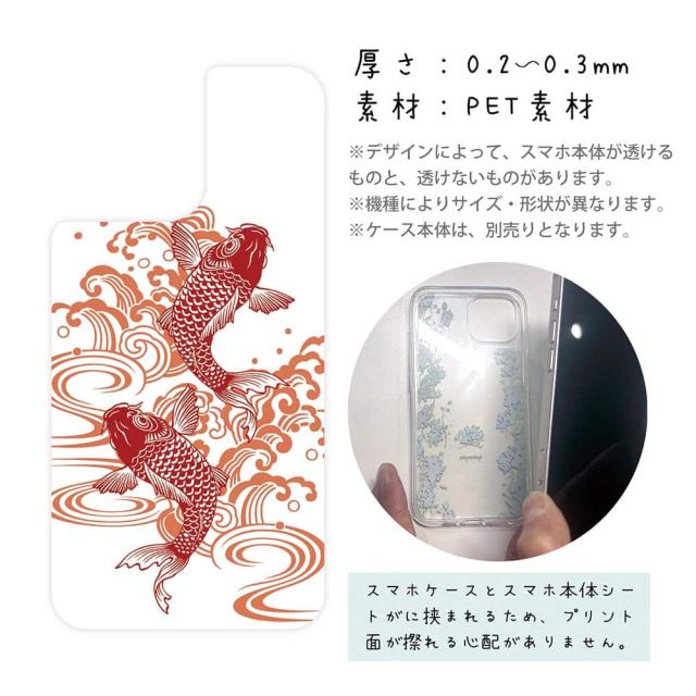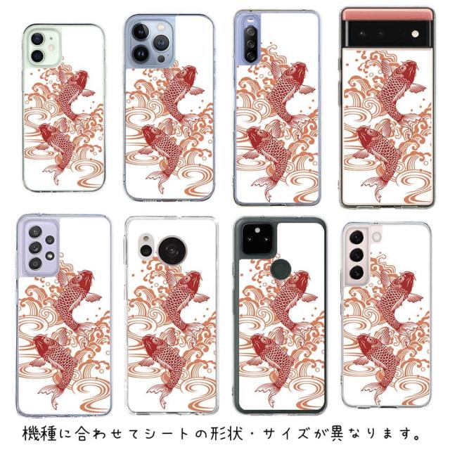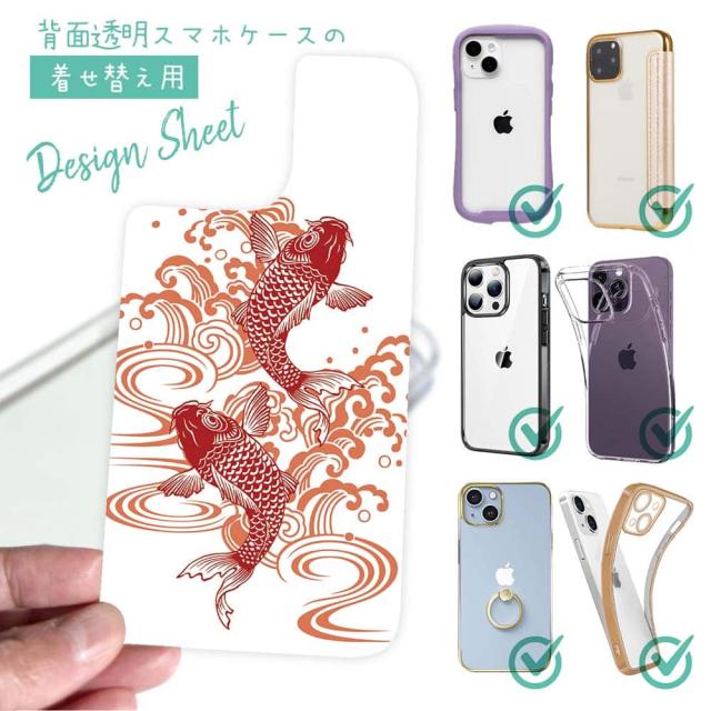 スマホケース iPhone Google Pixel Xperia Galaxy AQUOS arrows 着せ替え シート インナーシート スマホカバー 背面 透明 クリア オリジナル デザイン 釣り 魚 ルアー タトゥー風昇り鯉 レッド&ホワイト
