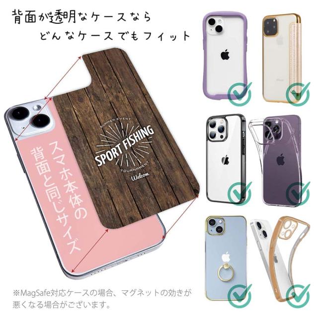 スマホケース iPhone Google Pixel Xperia Galaxy AQUOS arrows 着せ替え シート インナーシート スマホカバー 背面 透明 クリア オリジナル デザイン 釣り 魚 ルアー トーナメントエンブレム
