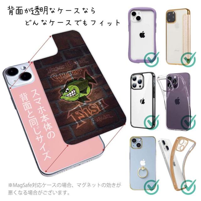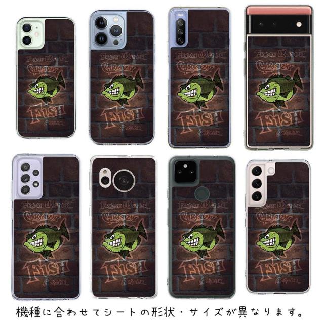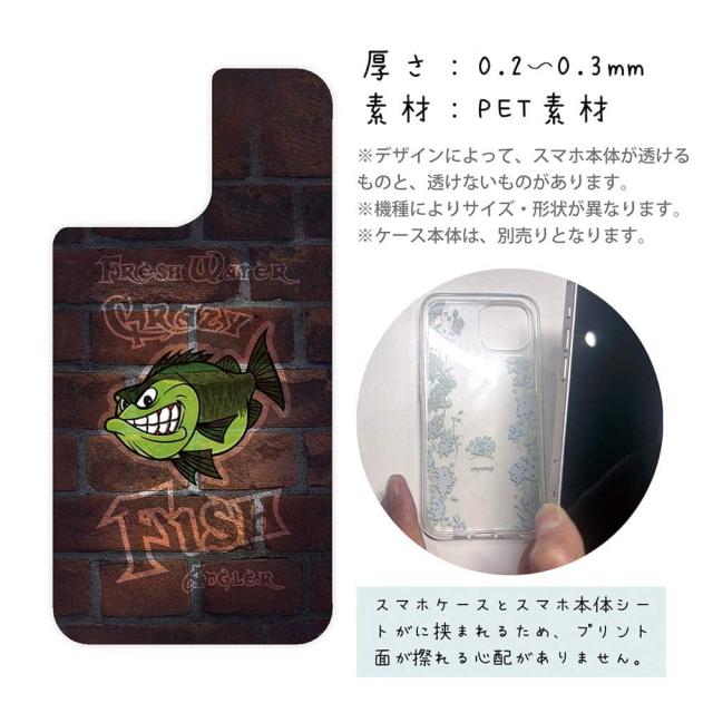 スマホケース iPhone Google Pixel Xperia Galaxy AQUOS arrows 着せ替え シート インナーシート スマホカバー 背面 透明 クリア オリジナル デザイン 釣り 魚 ルアー クレイジーバス 落書き風
