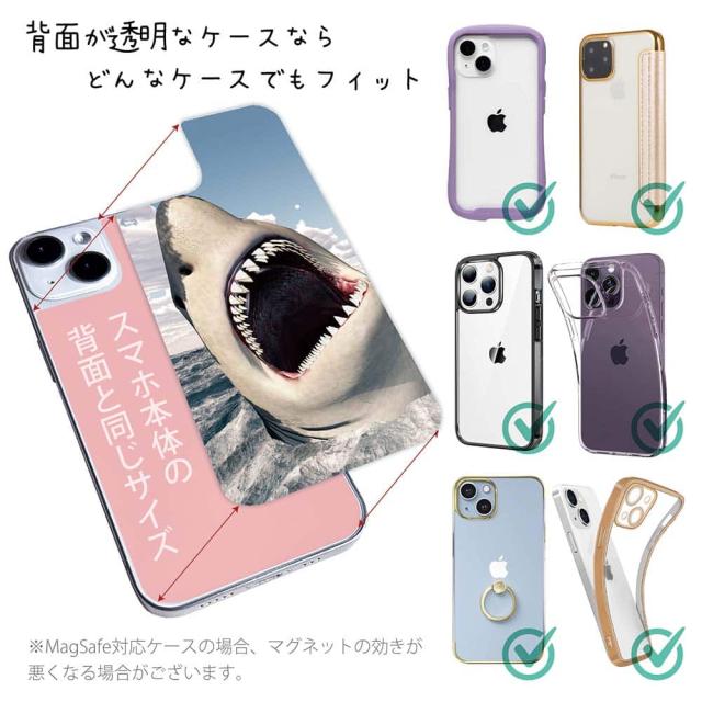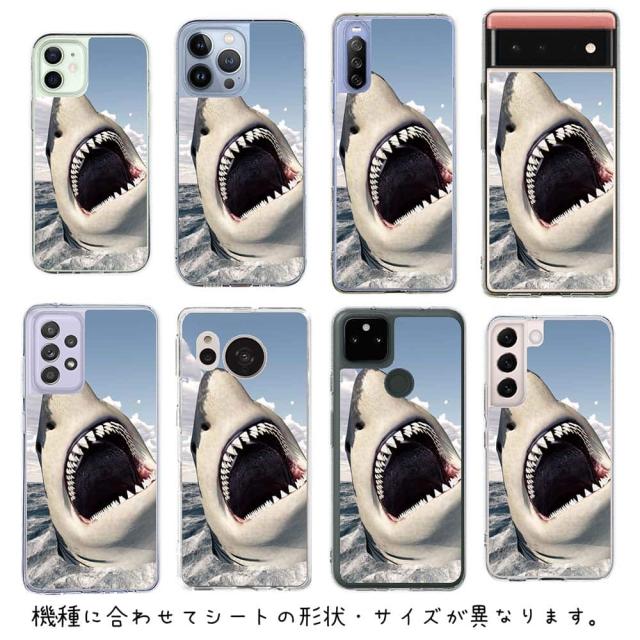 スマホケース iPhone Google Pixel Xperia Galaxy AQUOS arrows 着せ替え シート インナーシート スマホカバー 背面 透明 クリア オリジナル デザイン 釣り 魚 ルアー サメ「ジョーズ3」(JAWS 3) 鋭い歯