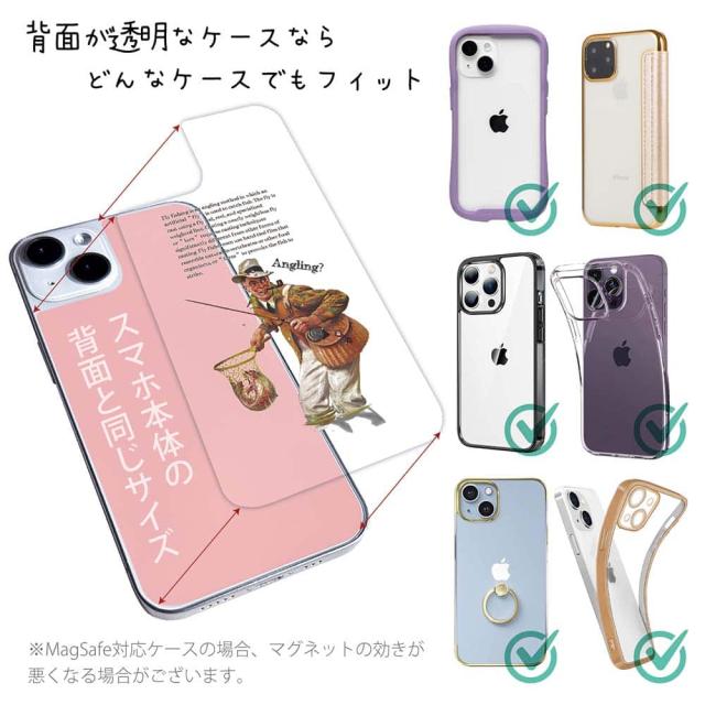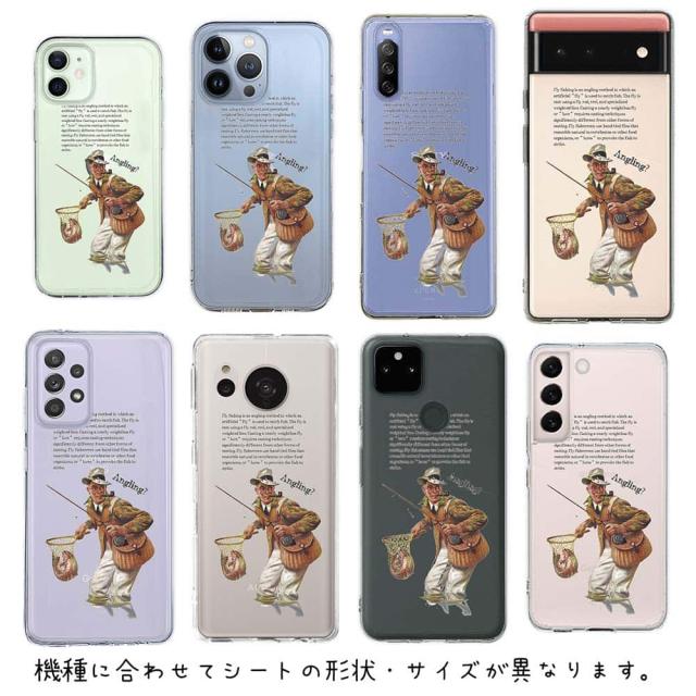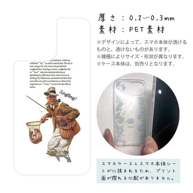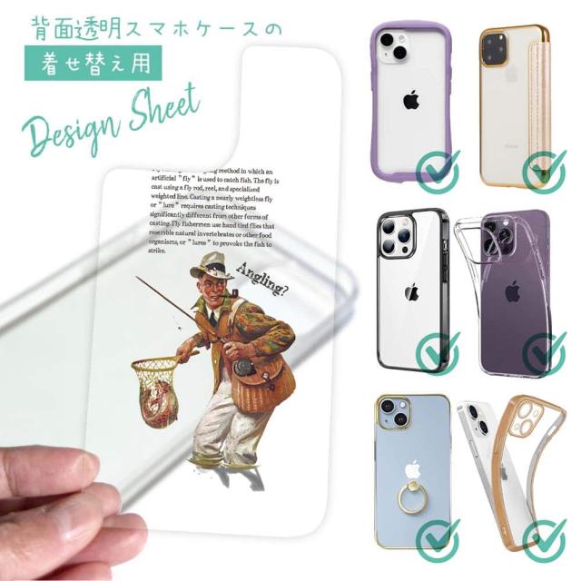 スマホケース iPhone Google Pixel Xperia Galaxy AQUOS arrows 着せ替え シート インナーシート スマホカバー 背面 透明 クリア オリジナル デザイン 釣り 魚 ルアー フライフィッシング