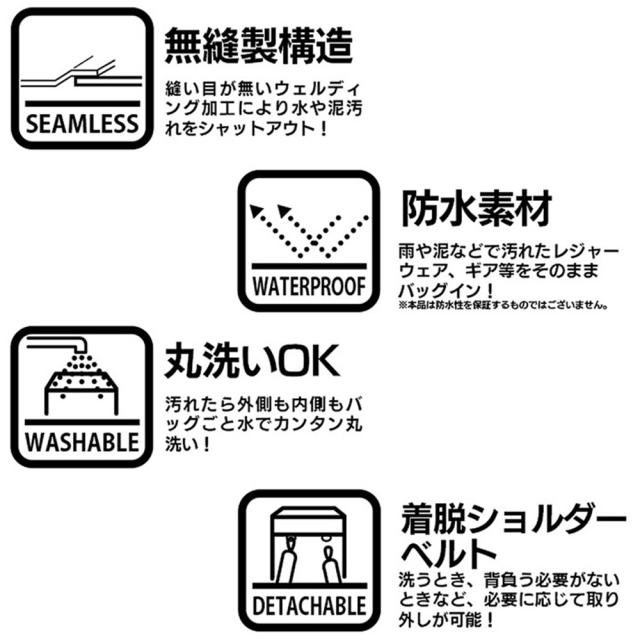 防水素材だから水分や空気を通さないので濡らしたくない物、汗や汚れた衣類、スポーツギアを持ち歩く時にオススメ。