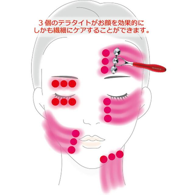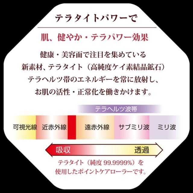 ローラー部分にテラタイト(高純度多結晶シリコン)を使用したフェイシャルケア用美波動ポイントケ アローラーです。