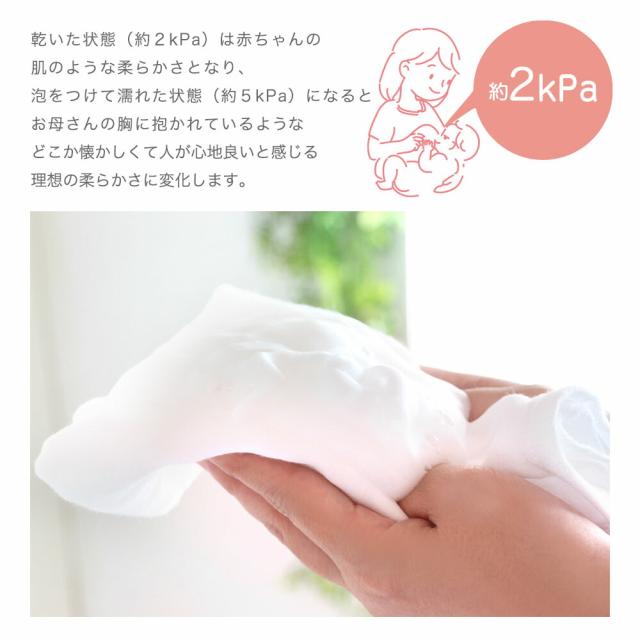 乾いた状態(約2kPa)は赤ちゃんの肌のような柔らかさとなり、