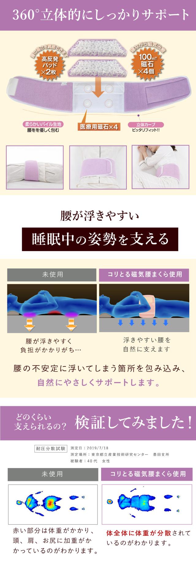 腰枕 腰まくら コリとる 磁気 腰 腰用 腰専用 枕 まくら 腰痛 安眠 対策 腹巻 日本製 こりとる 送料無料 ABCかうも せのぶら本舗 放送 父の日 母の日 誕生日 敬老の日 ギフト