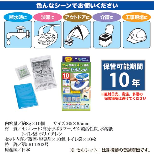 非常用トイレ セルレット 10回分 セット 簡易トイレ凝固材 携帯トイレ 防災トイレ 震災トイレ 簡易トイレ 防災用品