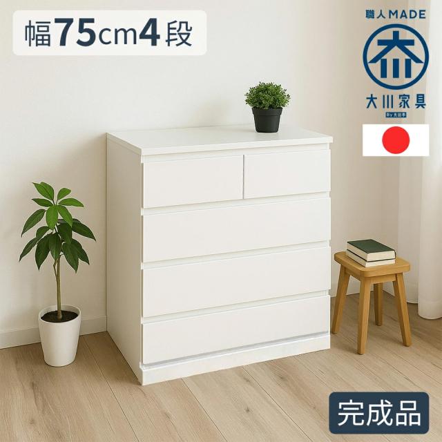 完成品 チェスト 子供 キッズ 子供 75cm パッソ 75cm 4段 【 タンス 日本製 収納棚 箪笥 引き出し 引き出し スライドレール 収納 キッズ ベビー 子供用 小さめ キッズチェスト ベビーチェスト 大川家具 日本製 国産 木製 白