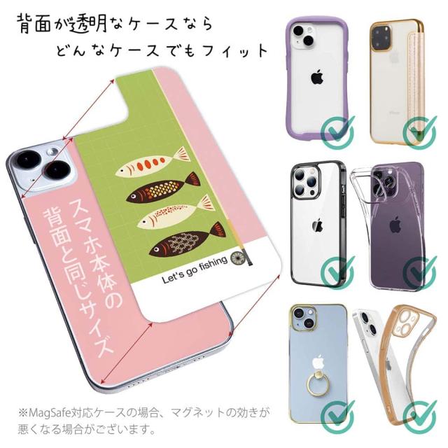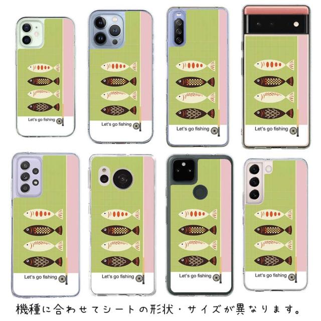 スマホケース iPhone Google Pixel Xperia Galaxy AQUOS arrows 着せ替え シート インナーシート スマホカバー 背面 透明 クリア オリジナル デザイン 釣り 魚 ルアー レッツゴー