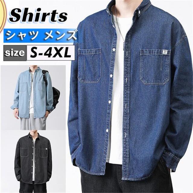 激安 シャツ メンズ デニム デニムシャツ トップス カジュアル 長袖 無地 ポケット付き ビジネス カーゴ 春秋 着痩せ ゆったり アウトドア 上品