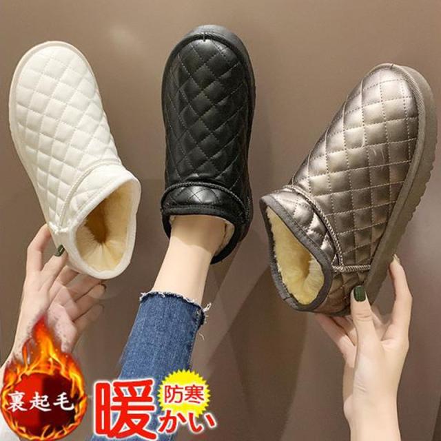 ムートンブーツ レディース ブーツ 防寒 スノーブーツ 雪靴 裏起毛 スノーシューズ ファー 裏ボア 菱柄 モコモコ アンクルブーツ カジュアル 冬 保温