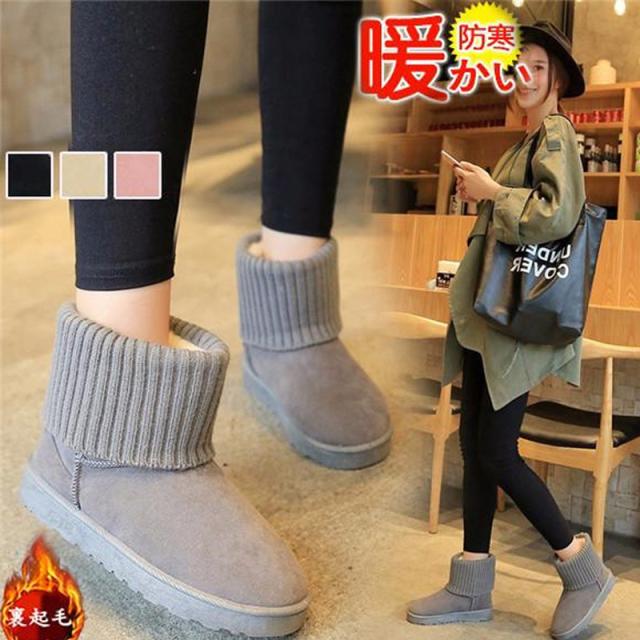 ムートンブーツ ファー レディース ブーツ 防寒 裏起毛 裏ボア スノーブーツ 雪靴 スノーシューズ モコモコ アンクルブーツ カジュアル 冬 保温 ニット