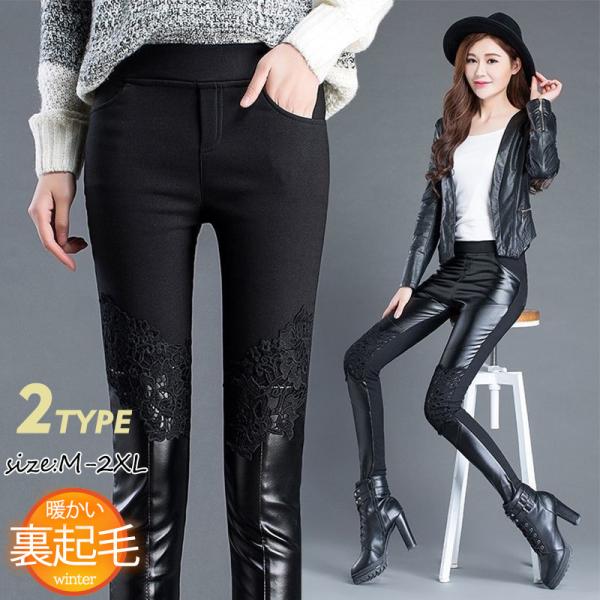 セール レザーパンツ レディース フェイクレザー 裏起毛 ボトムス ロング 花柄 ハイウエスト カジュアル スキニー 着痩せ 保温 誕生日 プレゼント