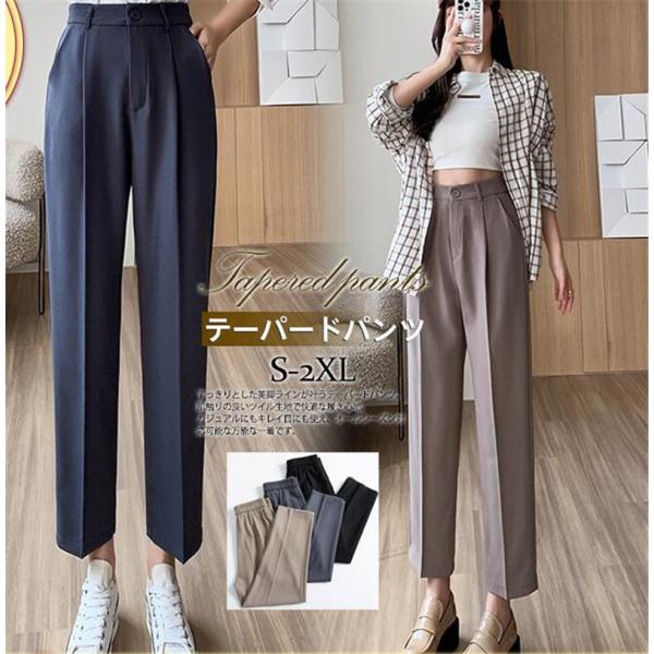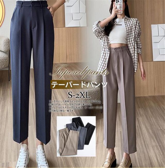 テーパードパンツ レディース ボトムス スラックス ビジネス ハイウエスト カジュアル 無地 ストレート 結婚式 卒業式 母の日 プレゼント 上品