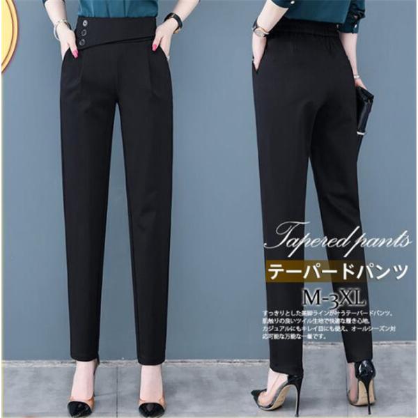 テーパードパンツ レディース ボトムス スラックス 九分丈 ビジネス ウエストゴム ハイウエスト カジュアル 体型カバー 秋服 結婚式 卒業式 面接 おしゃれ 大人 シンプル ゆったり スリム 着痩せ 大きいサイズ スーツ フォーマル ストレッチ 伸縮性 ストレート 仕事 母の日 プレゼント 就職 就活 アウトドア ルームウエア 美脚 20代 30代 40代 50代 60代 ファション エレガント 上品