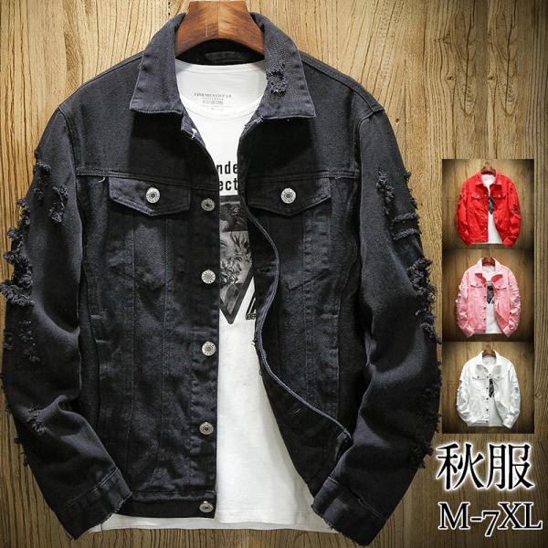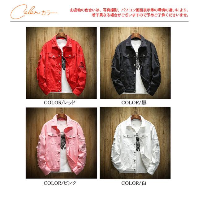 デニムジャケット メンズ ジャケット デニム ジージャン ブルゾン ダメージ加工 無地 ジャンパー カジュアル ゆったり シンプル カップル 春秋