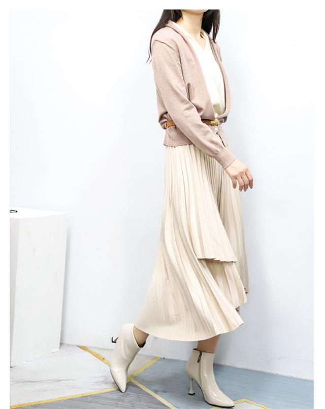 女性らしさを引き立てるミモレ丈。抜け感を持たせた絶妙丈が足元を軽やかに飾り、華奢見え効果も