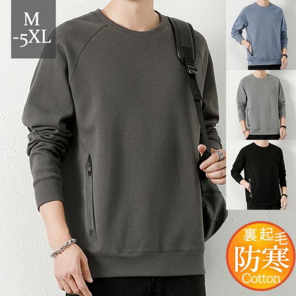 トレーナー メンズ 裏起毛 クルーネック スウェット トップス 長袖 パーカー 無地 カジュアル 保温 春秋 コーデ ゆったり 父の日 プレゼント