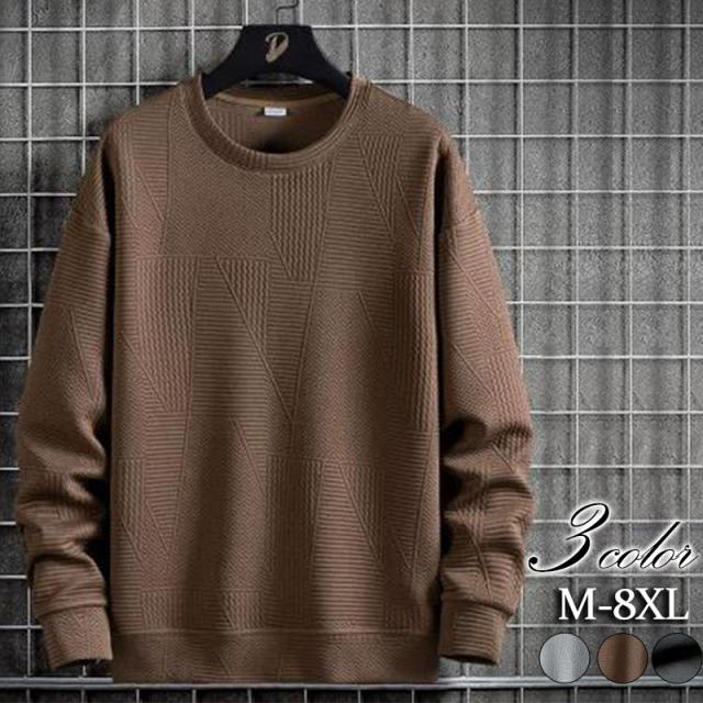 トレーナー メンズ カットソー トップス 長袖Tシャツ ジャカード クルーネック 部屋着 カジュアル ゆったり 春秋 カーデ 大きいサイズ アウトドア