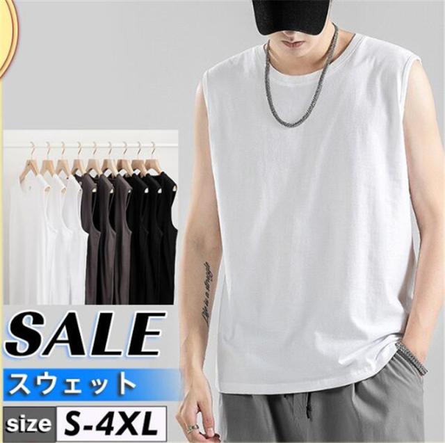 セール タンクトップ メンズ ノースリーブ 運動着 スポーツ トレーニング ジム カットソー 袖なし 薄手 無地 大きいサイズ 通気性 着痩せ 大人
