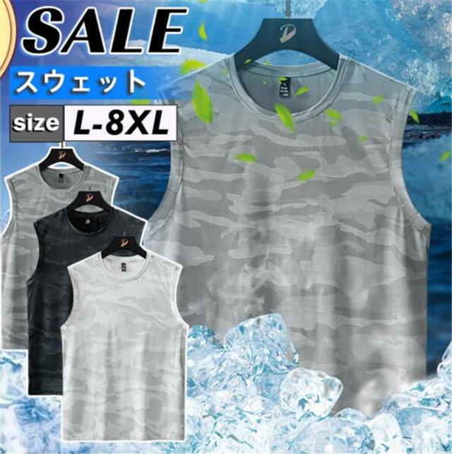 ノースリーブ タンクトップ メンズ Tシャツ 迷彩柄 スポーツ トレーニング ジム カットソー 袖なし 薄手 大きいサイズ おしゃれ ひんやり 軽量