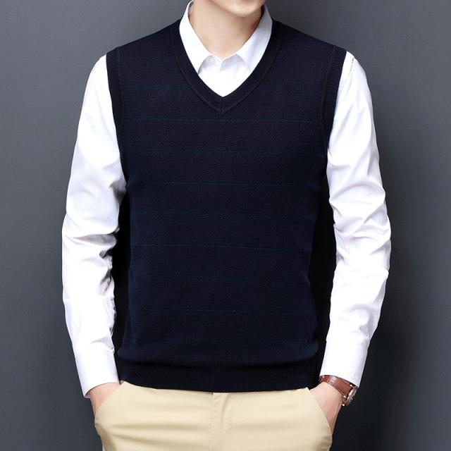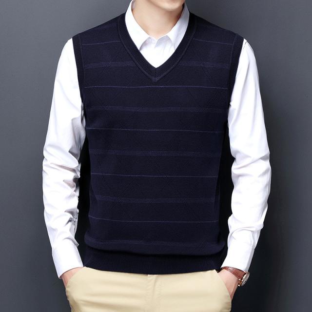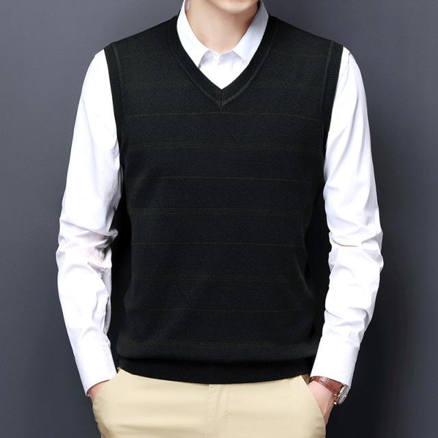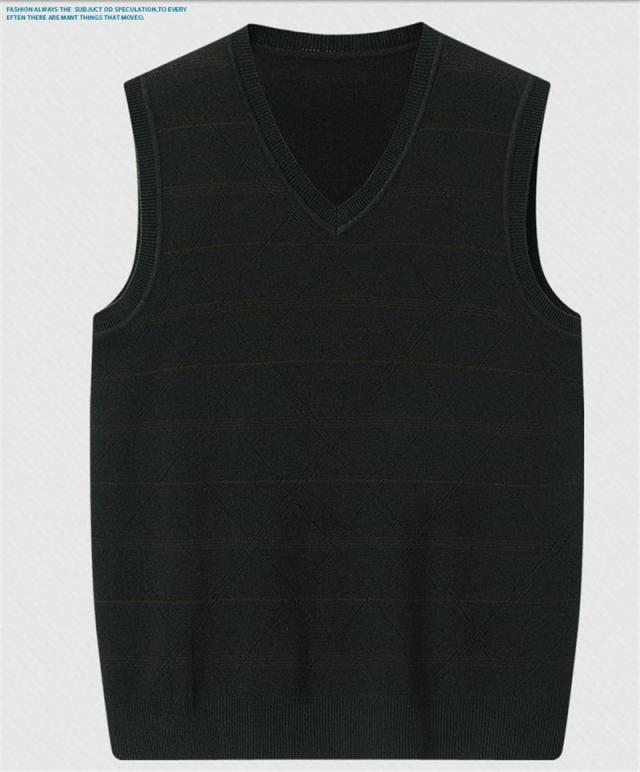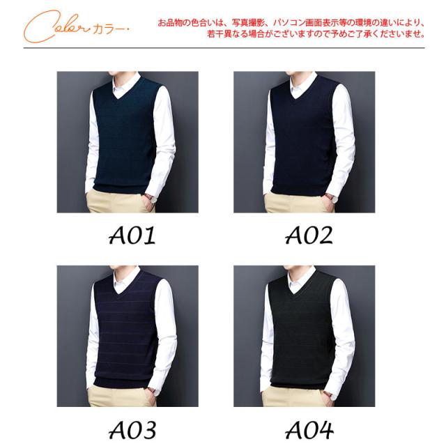 ニットベスト メンズ Vネック ビジネス フォマール カットソー ノースリーブ トップス ストライプ 秋冬 カジュアル シンプル 厚手 通勤 おしゃれ